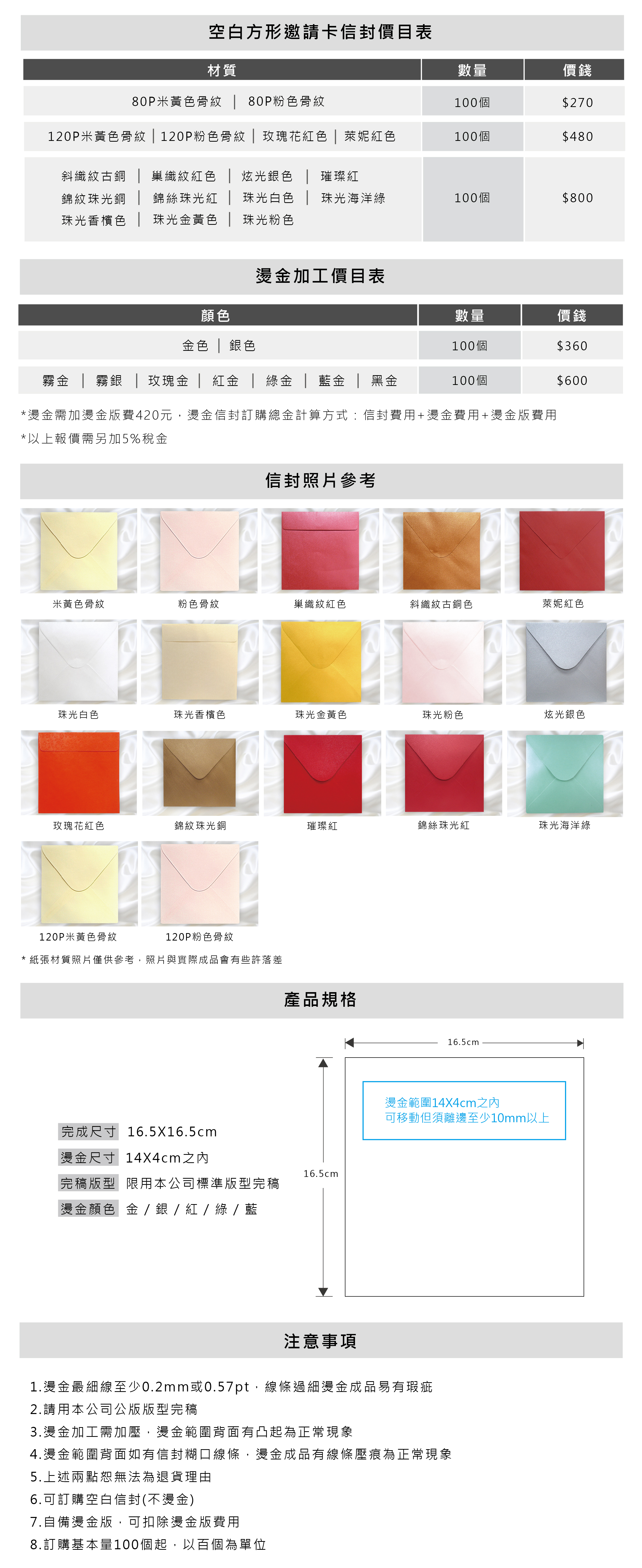 燙金方形邀請卡信封